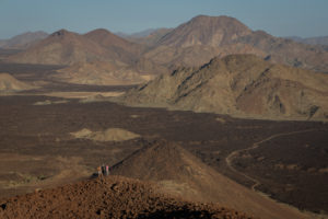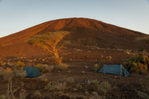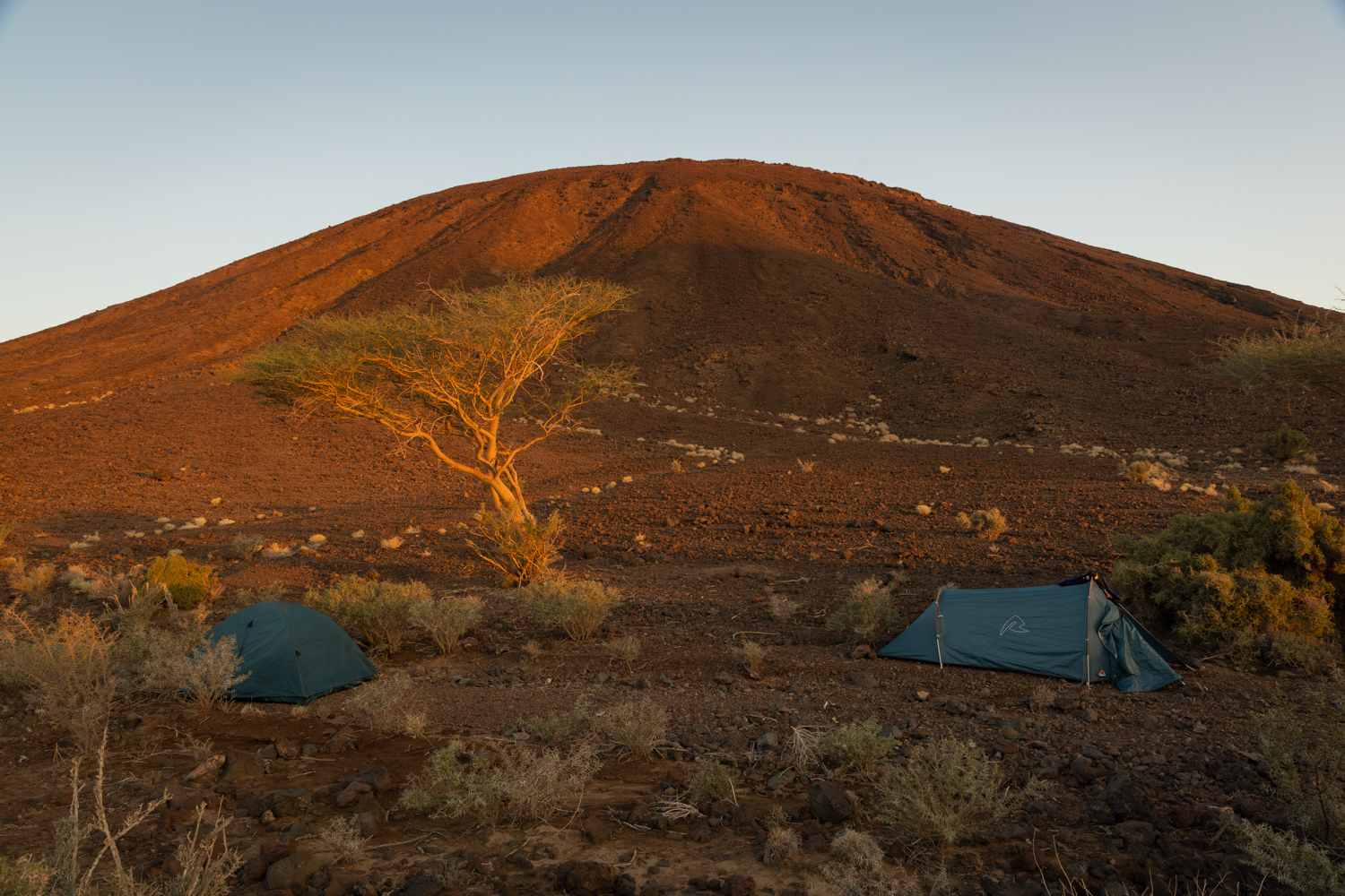 Cesta v lávovém poli po cestě plném ostrých šutrů si konečně vybrala svoji daň. Defekt a poškození jednoho vozu nám může zkomlikovat návrat do Medíny…Ale ráno moudřejší večera. Vaříme a na ohni pečeme velblouda. Náladu nám zlepšilo, že se podařilo vyměnit poškozné kolo. Skvěle chutnající velbloud ji ještě o něco vylepšil.