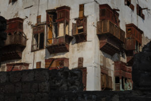 Džidda je druhé největší město v Saudské Arábii, je branou do Mekky a leží na břehu Rudého moře. To poskytovalo, podobně jako v jiných přímořských městech, stavební materiál na domy. Staré budovy s dřevěnými barevnými arkýři jsou soustředěny v historické čtvrti Al Balad, která je zapsána do seznamu UNESCO. Přes tuto skutečnost to dlouho vypadalo, že chátrající a různě se rozpadající domy se postupně zcela zhroutí. Poslední roky se ale mohutně opravuje a rekonstruuje a za nějakou dobu zde bude hezká turistická rezervace. Zatím ale stále ještě v domech sídlí původní krámky, které jsou ale postupně vytlačovány turisticky atraktivnějšími kavárnami, prodejnami suvenýrů a hotely. Čtvrť má ale výraznou orientální atmosféru a domy jsou bezpochyby krásné. Prohlédli jsme si i dva historické domy zevnitř. Ten významnější, Biet Nassif, je ukázkou saudskoarabské architektury. Bohužel vyšší zajímavá patra, do kterých kromě schodiště vedly šikmé plošiny umožńující na velbloudech přepravovat zboží do vyšších částí domu, zůstávají turistům nepřístupná.