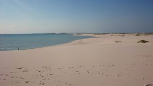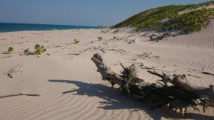 Jestli jsem si myslela, že cesta do parku Bahnine byla úmorná, tak cesta na pobřeží byla ještě daleko příšernější-trvala totiž téměř deset hodin.Nikde nic, tu a tam maličká vesnička. Cesta, kterou navigace ukazovala jako hlavní, vypadala jako u nás polní cestička pro pěší, nemluvě o dírách a úmorném vedru. Všichni už jsme byli tak otrávení (a co hůř naklepaní jak řízky), že už nikdo z nás téměř nic neříkal. Pár kilometrů před pobřežím se navigace rozhodla stávkovat-tatíčkova slova nelze publikovat do veřejné sféry (skoro jsem měla strach, že mu praskne žilka v oku). Za tmy jsme dorazili do kempu Baobab beach ve městečku Vilankulo a na mě pravděpodobně zapůsobil mořský vzduch, šumění moře a závan civilizace jako afrodiziaukum neb jsem plná elánu vyběhla z auta a prozkoumávala pobřeží a zákoutí kempu. Za to Kačence byl příjezd na pobřeží úplně jedno, protože ležela v autě s horečkou 38,9 a dokonce odmítla jít na večeři ( to jí muselo být hodně zle..). Bylo dost hodin a nám se po té náročné cestě nechtělo jít mimo kemp, zvolili jsme tedy večeři v kempu. Daleko víc bych si ty plody moře vychutnala , kdybych na jídlo nečekala přes hodinu. 🙂 Kačenka mezitím propotila celý spacák a udělalo se jí líp, což se projevilo otravováním milované a k smrti unavené sestry.