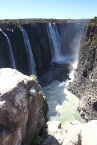 Viktoriiny vodopády patří k největším na světě a jsou velkou atrakcí na hranici Zimbabwe a Zambie. My jsme zvolili přístup ze zimbabwské strany. Hned na hranici jsme si měli možnost udělat obrázek, do jaké zemi přijíždíme. Zdlouhavé byrokratické postupy, víza za 30 USD, další poplatek 55 USD za vůz a nutné pojištění za 50 USD avizovaly, že přijíždíme do země diktátora Mugabeho, kde je nutno každého turistu náležitě „oškubat“.